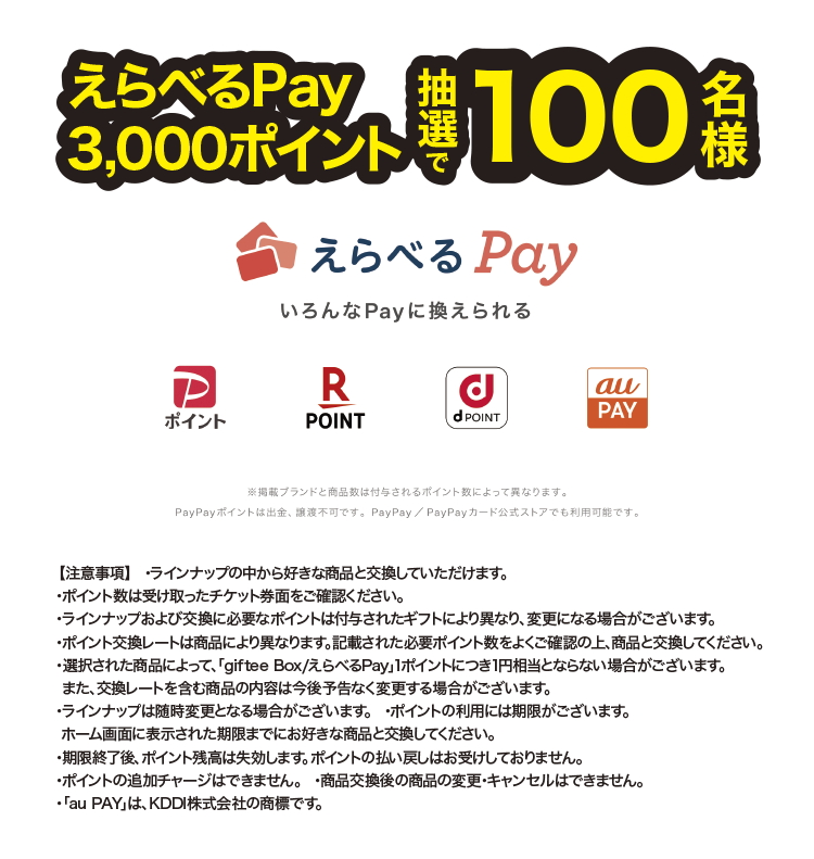 - ※本キャンペーンのご当選者様は同時期に実施されている同じ商品を対象とした、他のキャンペーンとは重なってご当選できない場合がございます。