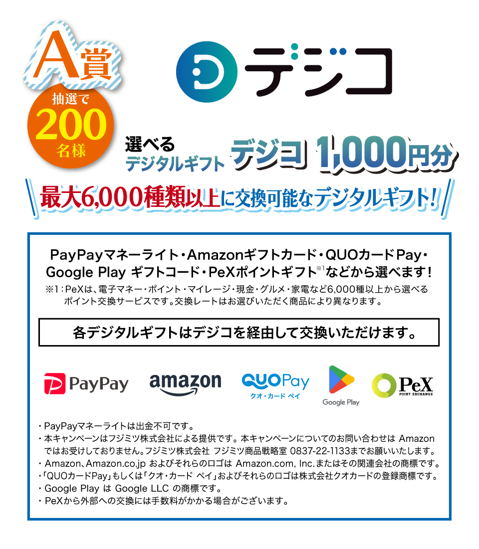 キャンペーン期間中にお買い上げのフジミツロゴマーク入り商品200円(税込)以上のレシート画像を撮影・添付しご応募ください。