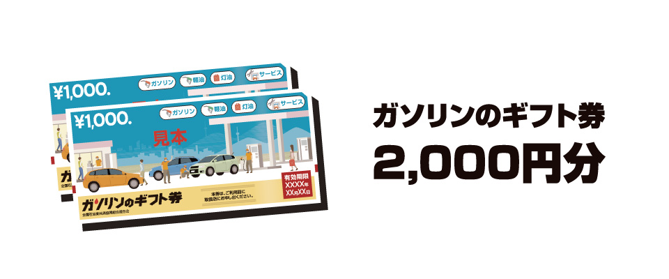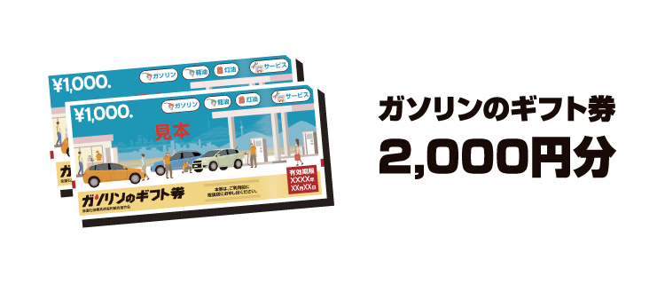 抽選で10人に1人、ガソリンのギフト券2,000円分が当たる!