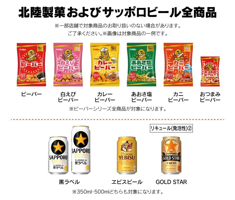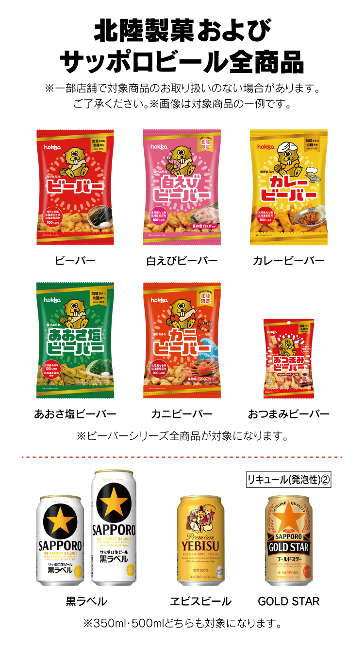 ご応募登録フォームにしたがって必要事項を入力のうえ、対象チェーン店舗にて北陸製菓とサッポロビールの対象商品1品ずつ以上を含む合計1,000円(税込・合算可)以上のお買い上げいただいたレシート画像をアップロードすることでご応募できます。