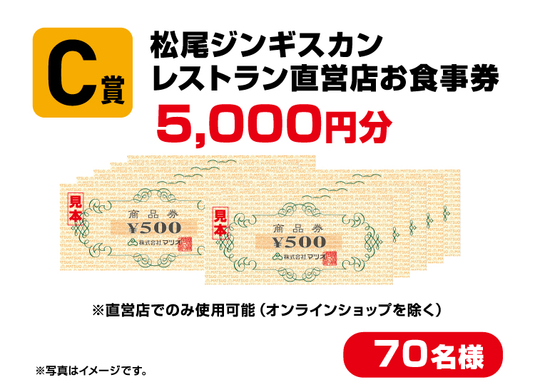 - ※A賞は電子チケットです。当選メッセージにてURLをお送りいたしますので、ご利用にはPCまたはスマートフォンが必要です。詳しくは