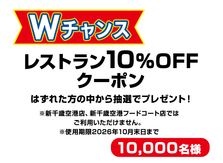 - ※ご応募はお一人様1回限り、お会計1,000円(税込)ごとに1枚、抽選カードを進呈します。お一人様1枚を上限とし、抽選カードが無くなり次第終了とさせていただきます。