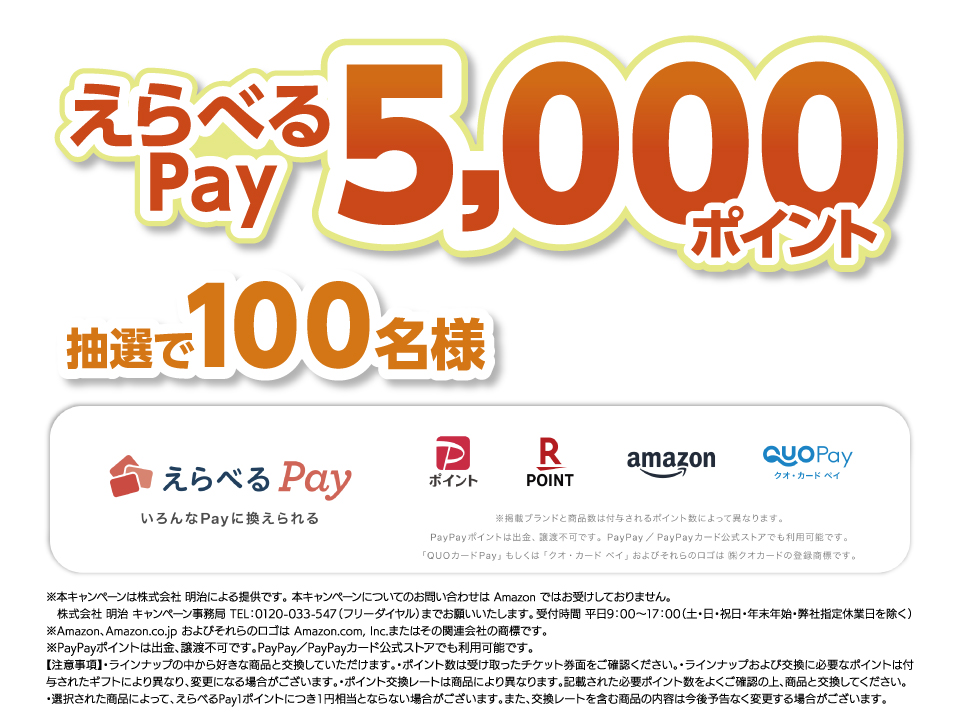 東海・北陸エリア限定企画 明治「えらべるPay5,000ポイント」プレゼントキャンペーン