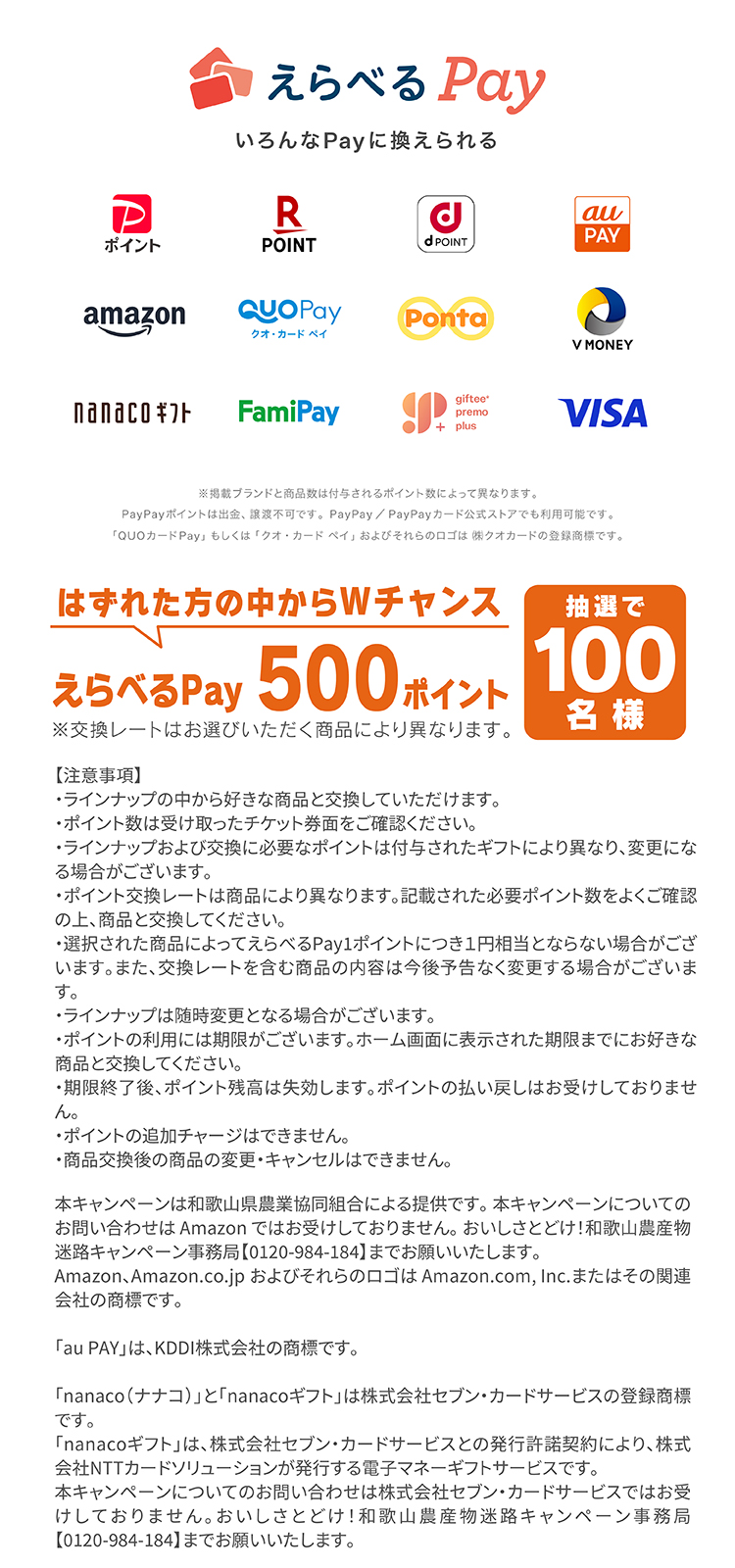 Wチャンスにご当選の方には、ギフトコードを送付いたします。