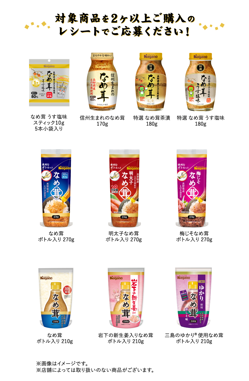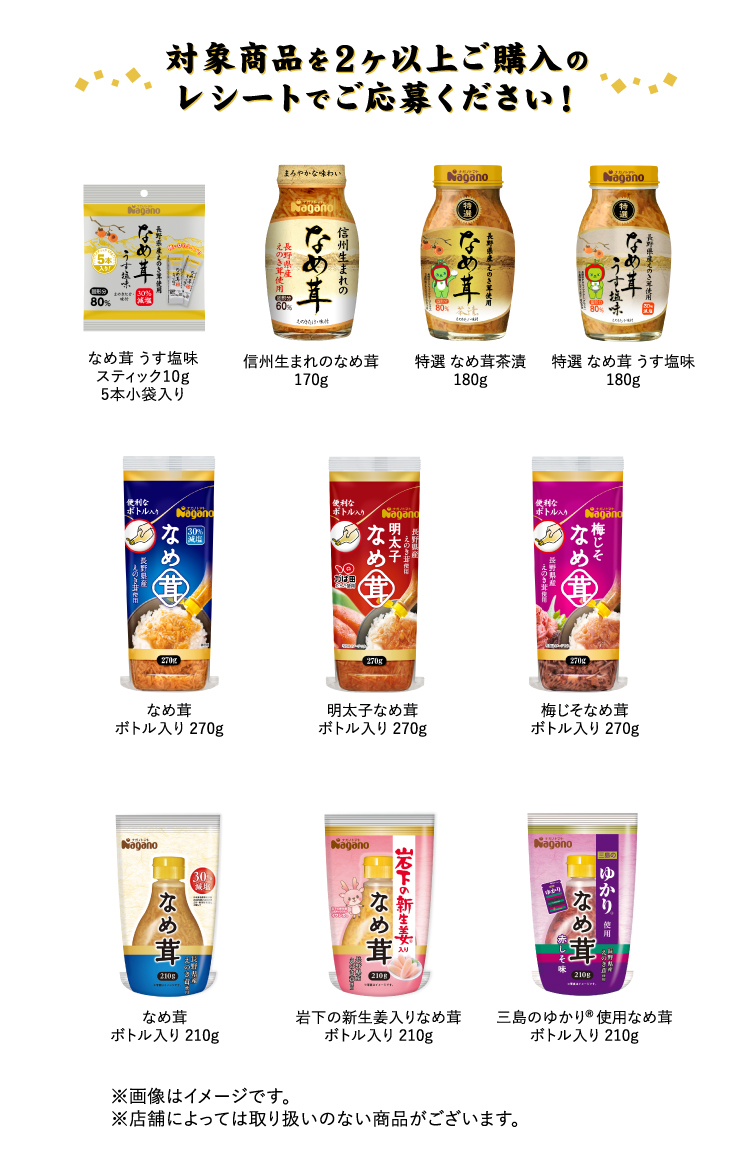- ※レシートが複数枚に分かれる場合は、すべてのレシートに対象商品が入っていることをご確認ください。