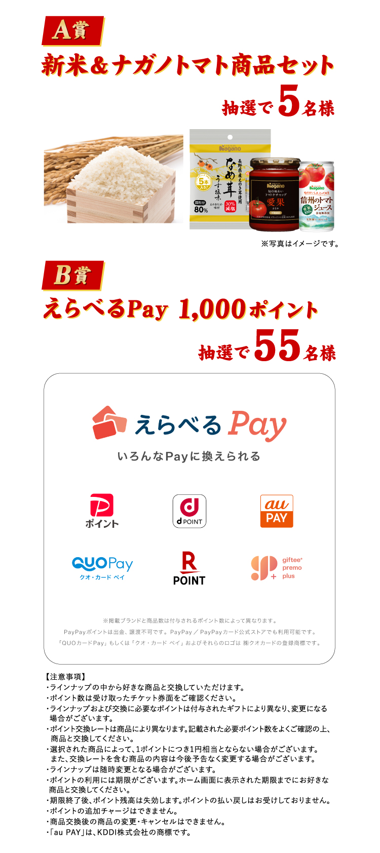 ※えらべるPay1,000ポイントは当選メッセージの画面の指示に従って賞品をお受け取りください。
