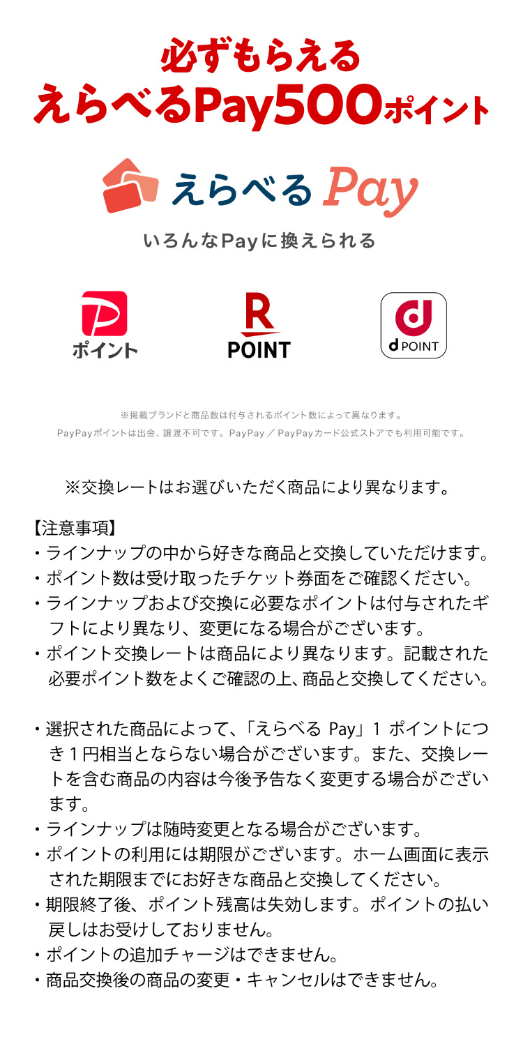 貼付二層シールから応募規約・応募要項に同意のうえ、二層シール記載のシリアルナンバーを入力してご応募いただけます。 えらべるPay500ポイントをもれなくプレゼントいたします。