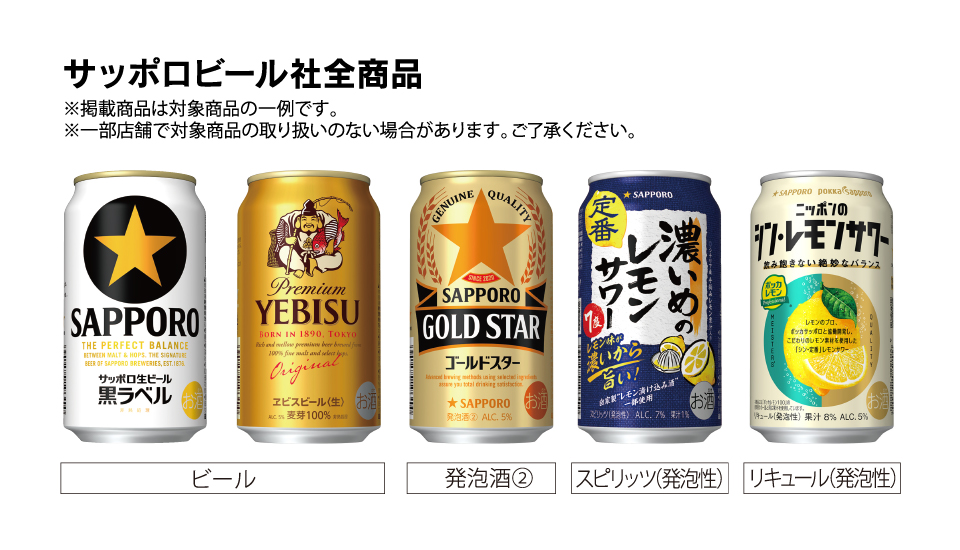 ※このキャンペーンの当選者は、同時期にサッポロビールが実施している同一商品を対象とした他のキャンペーンに当選できない場合があります。