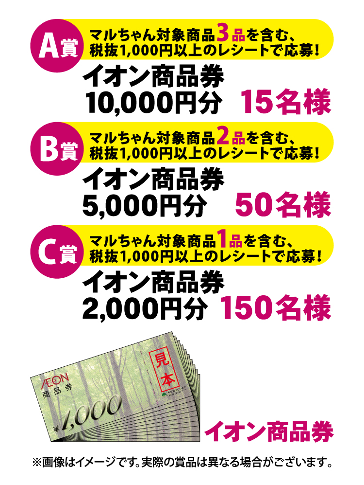 C賞:マルちゃん対象商品1品以上を含む税抜1,000円以上のレシート画像