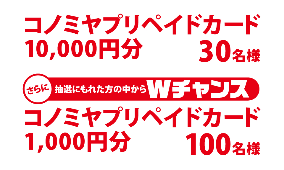 - ※同一のレシートで複数回または複数人からの応募があった場合は、応募が無効となります。
