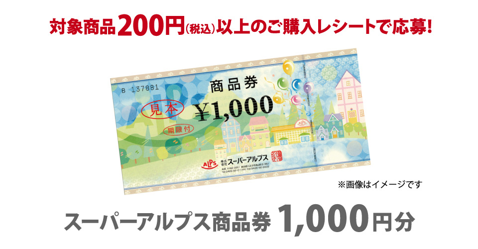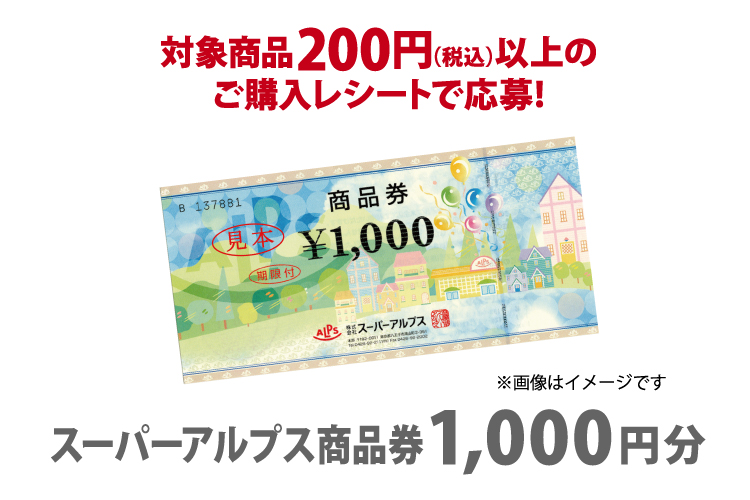 スーパーアルプス商品券1,000円分 抽選で80名様